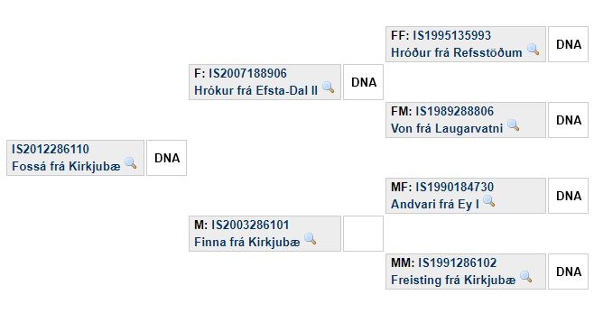 Fossá frá Kirkjubæ er 5 vetra gömul hryssa sem var sýnd í fyrstu verðlaun í sumar. Í aðaleinkunn hlaut hún 8.18 (Bygging: 8.26 / Hæfileikar: 8.12). Hún hlaut 8.5 fyrir tölt, brokk, vilja og geðslag, fegurð í reið, fet, háls/herðar/bógar og bak/lend. Síðan hlaut hún 9 fyrir stökk og réttleika. Í dómi hlaut hún 6 fyrir skeið en það hafði lítilega verið prófað fyrir dóm. Hún hefur hins vegar sýnt okkur góða takta á skeiði og verður það einfalt fyrir henni með meiri þjálfun. Frábær hryssa sem býr yfir einstöku geðslagi, traust og heilsteypt á allan hátt. Takthrein og með góð gangskil. Hægt verður að stilla henni upp í framtíðinni bæði sem fjórgangs eða fimmgangshesti í keppni. Einnig spennandi ræktunarhryssa en hún er fjórði ættliður í móðurætt með góð fyrstu verðlaun.