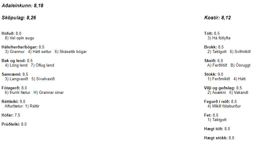 Ff. Hróður frá Refsstöðum (total 8.39 and honour prize for offsprings)